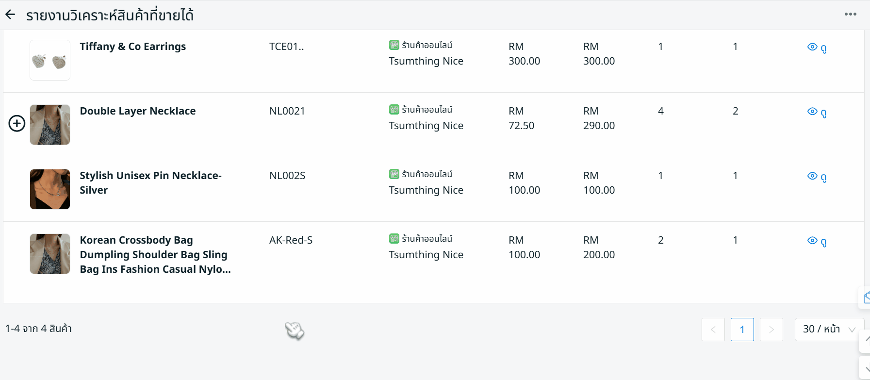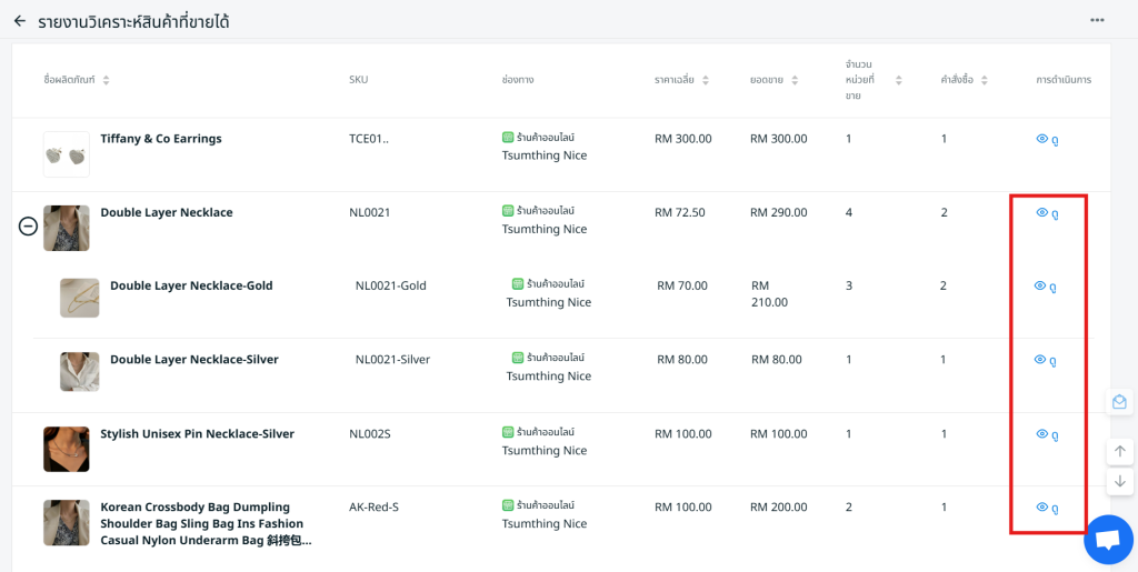 ขั้นตอนที่ 4: คลิก ดู เพื่อเข้าสู่ รายละเอียดการขายสินค้า เพื่อวิเคราะห์ประสิทธิภาพการขายของสินค้านั้น ๆ