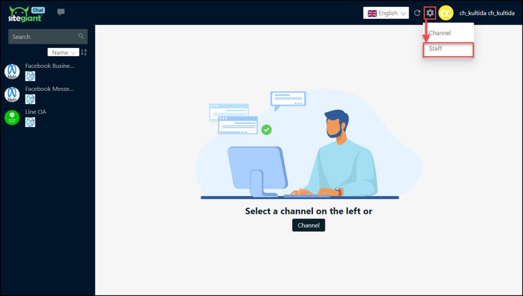 หลังจากติดตั้งแอป SiteGiant MultiChat บนคอมพิวเตอร์ของคุณแล้ว คุณสามารถมอบหมายพนักงานให้เข้ามาจัดการแชทจากหลายร้านค้าในมาร์เกตเพลสได้