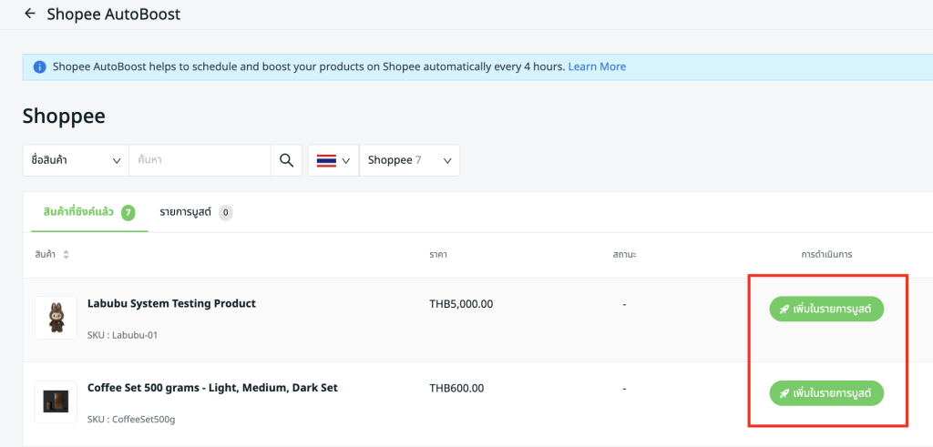 📌หมายเหตุ: คุณสามารถดันสินค้าได้สูงสุด 5 รายการต่อครั้งทุก 4 ชั่วโมง อย่างไรก็ตาม คุณสามารถเพิ่มสินค้ามากกว่า 5 รายการใน รายการ Boost สินค้าจะถูกเลือกสุ่มเพื่อดันทุก 4 ชั่วโมง
