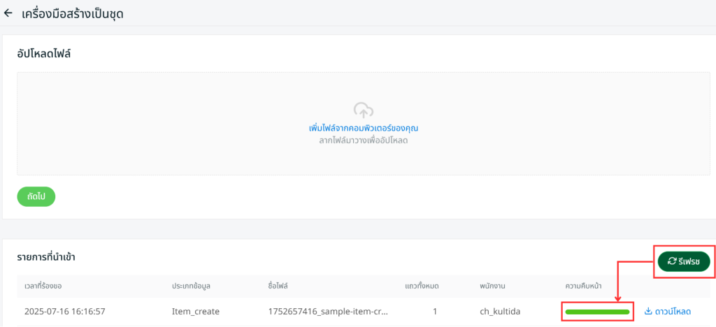 ขั้นตอนที่ 7: คลิก รีเฟรช หลังจากรอสักครู่ หากแถบสถานะเปลี่ยนเป็นสีเขียว แสดงว่าระบบนำเข้าข้อมูลสำเร็จแล้ว