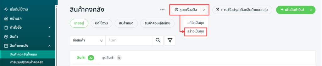 ขั้นตอนที่ 1: ไปที่เมนูด้านข้าง สินค้าคงคลัง > สินค้าคงคลังทั้งหมด