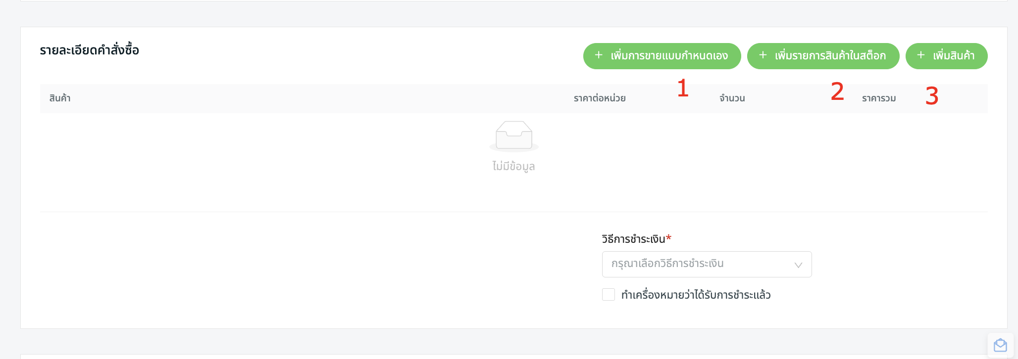 3. สร้างคำสั่งซื้อ (รายละเอียดคำสั่งซื้อ)