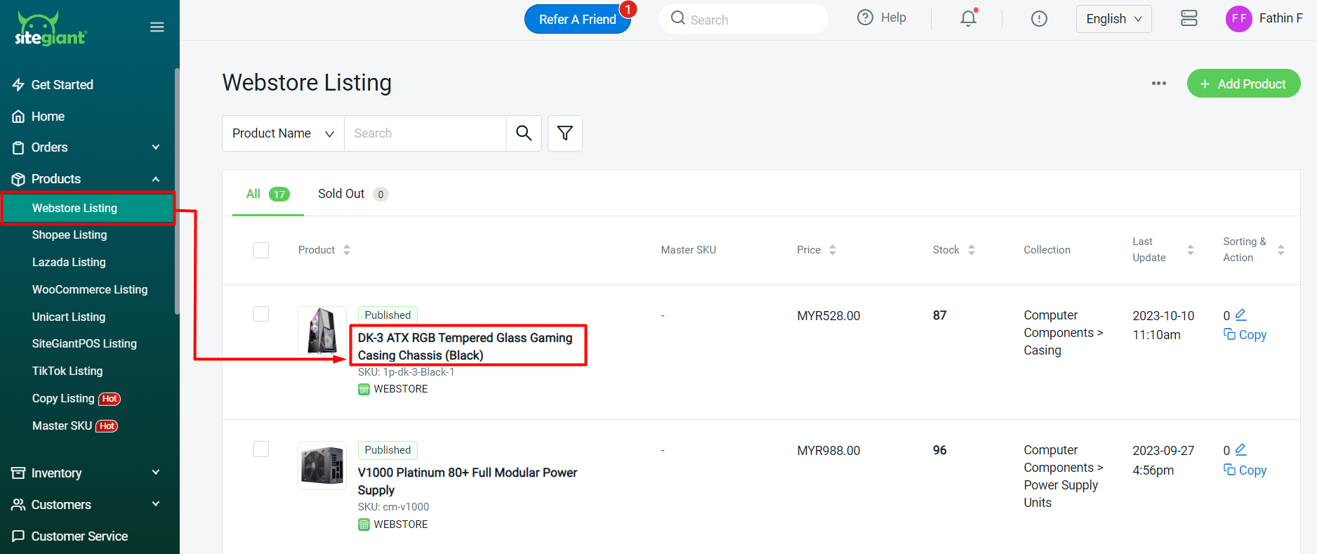 Step 1: Navigate to Products > Webstore Listing > click on the Product Name.