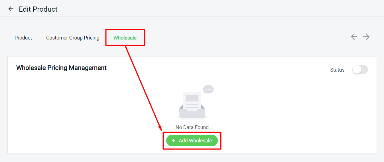 Step 2: In the product details page, click on the Wholesale tab > + Add Wholesale.