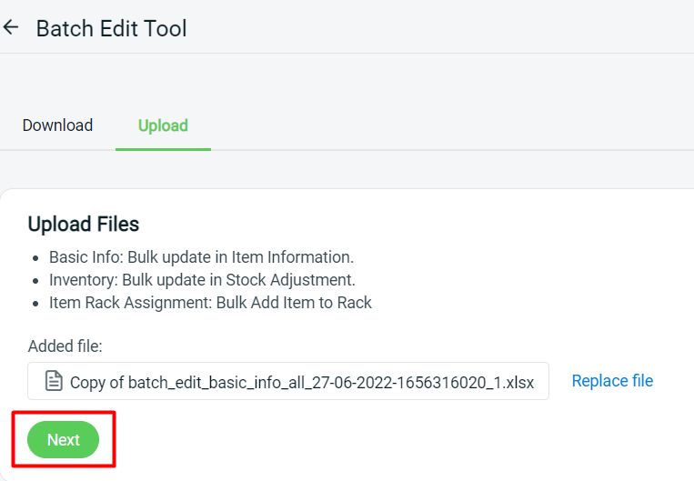 This feature allows you to edit inventory information and details in bulk and upload the Excel file so that you don’t have to edit the inventory one by one.