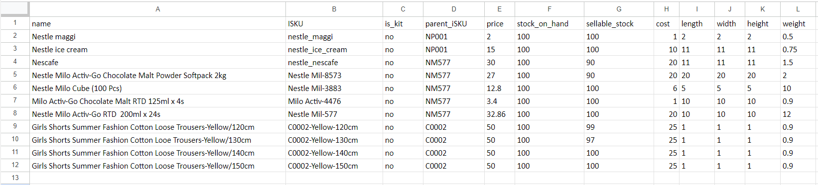 | *is_kit | Identify whether the item is an individual item or bundle kit | no: item yes: kit |