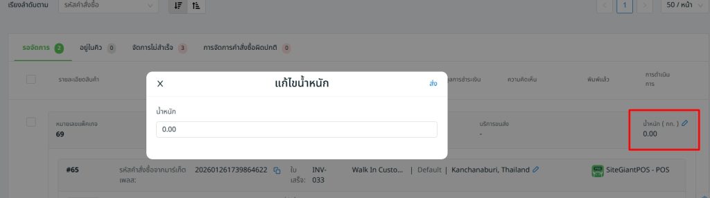 ขั้นตอนที่ 4: แก้ไขน้ำหนักพัสดุตามจริง > คลิกส่ง
