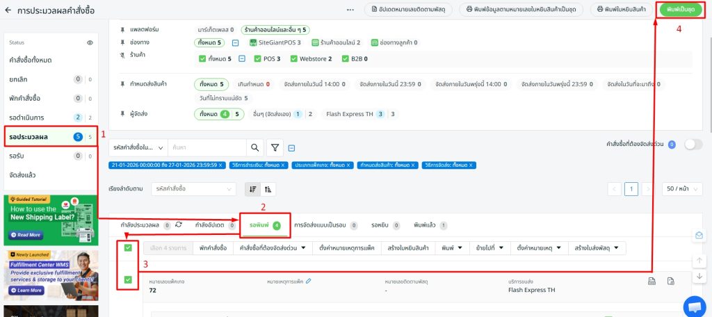 4. พิมพ์ใบปะหน้าขนส่ง Flash Express TH