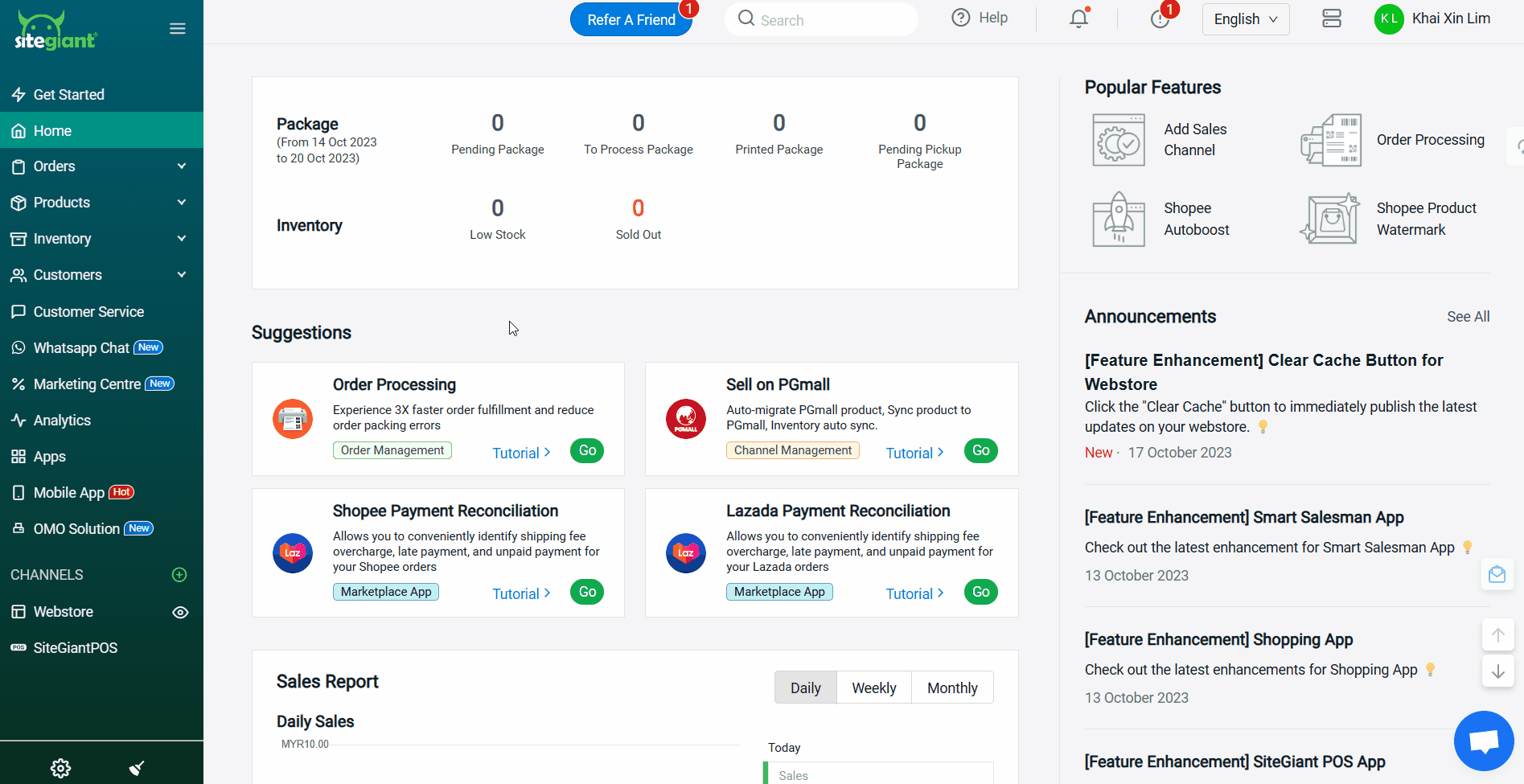 ด้วยระบบ SiteGiant POS คุณสามารถรวมการขายทั้งหน้าร้านและออนไลน์ไว้ในที่เดียวได้อย่างง่ายดาย ข้อมูลการขายและจำนวนสต็อกสินค้าของคุณจะถูกซิงก์และอัปเดตโดยอัตโนมัติ หลังจากการซื้อขายทั้งแบบออฟไลน์และออนไลน์