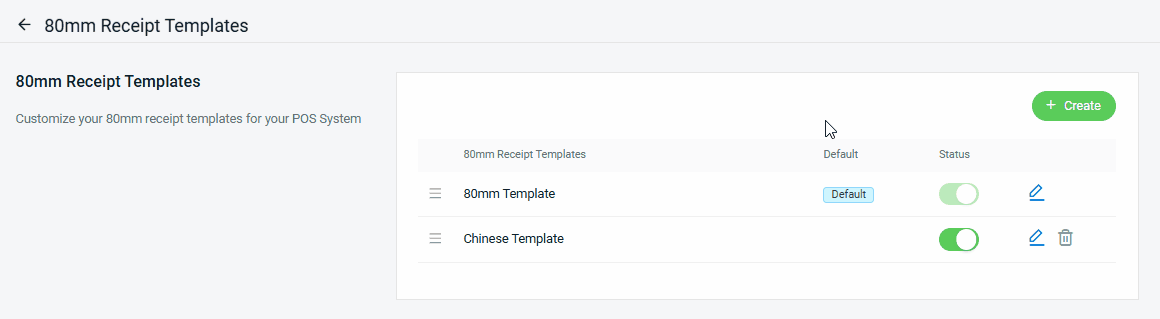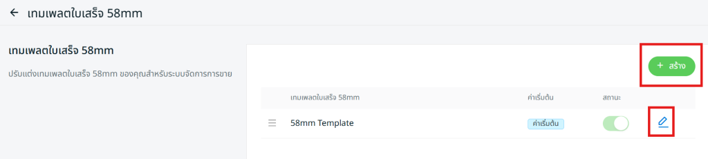 ขั้นตอนที่ 2: คลิกที่ สร้าง เพื่อเพิ่มเทมเพลตใบเสร็จ หลายแบบ หรือคลิกที่ไอคอนแก้ไข เพื่อปรับแต่งเทมเพลตเริ่มต้น