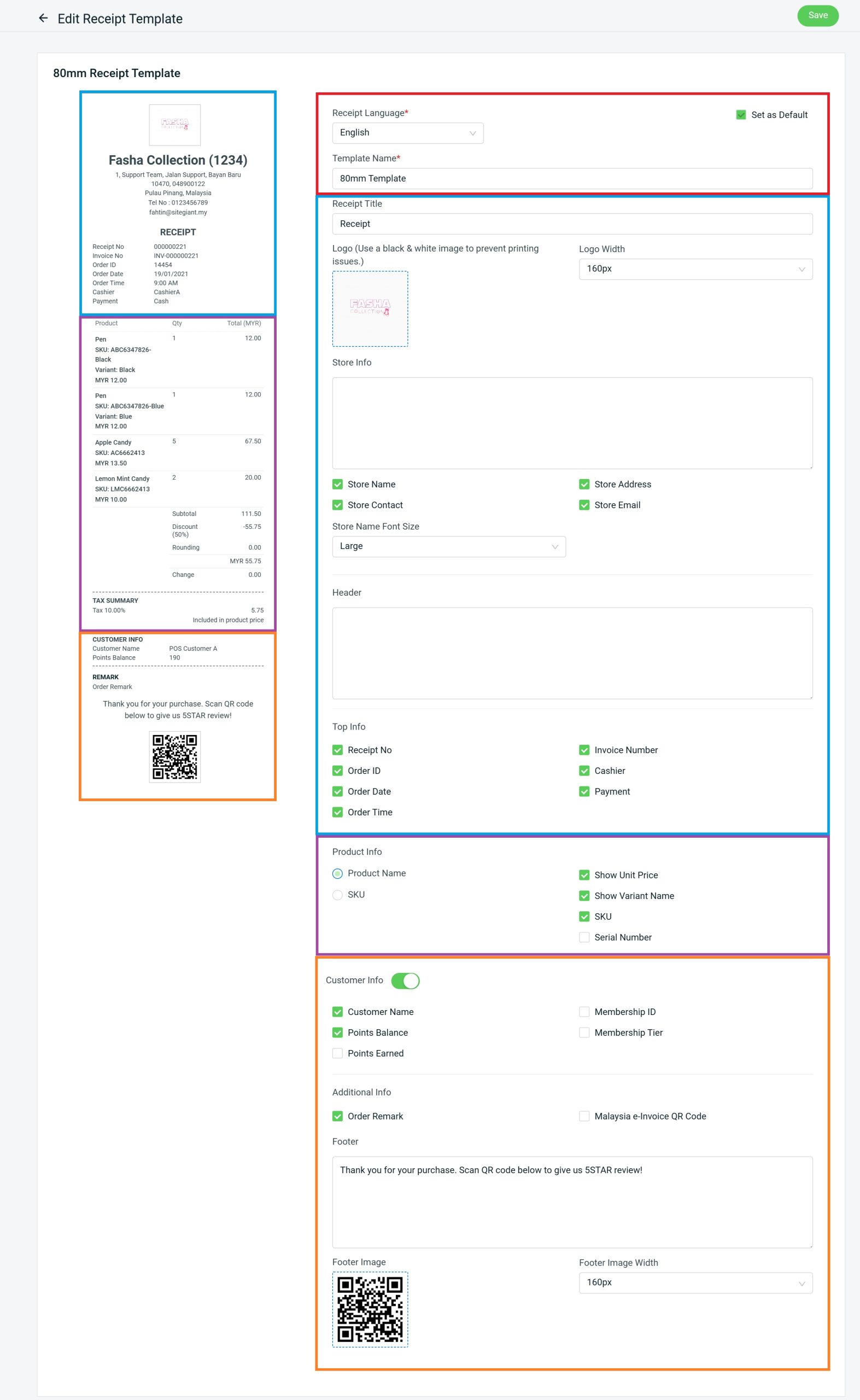 ขั้นตอนที่ 4: เปิด/ปิดสถานะเทมเพลตใบเสร็จใน POS ลากและวางเพื่อจัดลำดับการแสดงผลของเทมเพลตใบเสร็จ