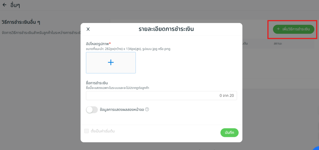 ขั้นตอนที่ 3: เปิดใช้งานสถานะของวิธีการชำระเงิน (Payment Method status)