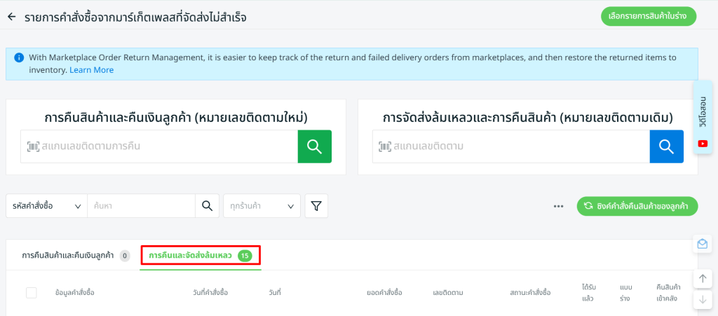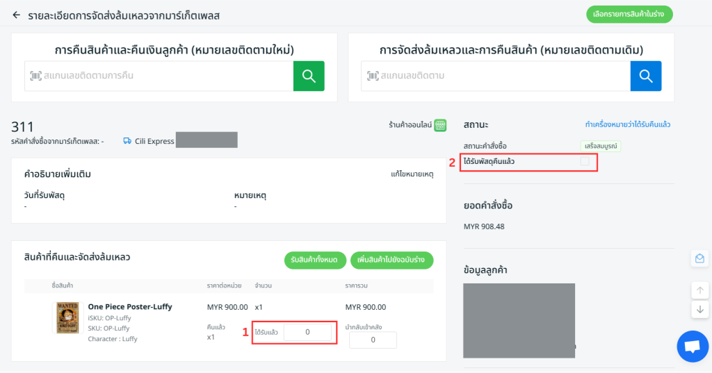 2. รับสินค้าคืนจากลูกค้าและคำสั่งซื้อที่จัดส่งไม่สำเร็จ