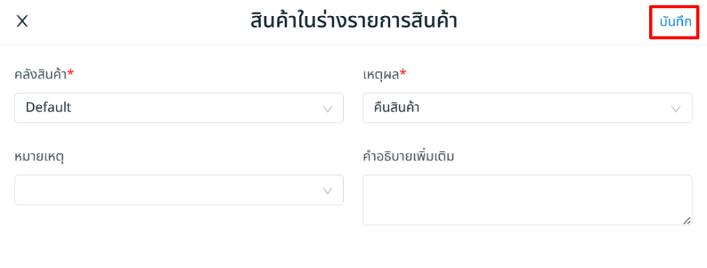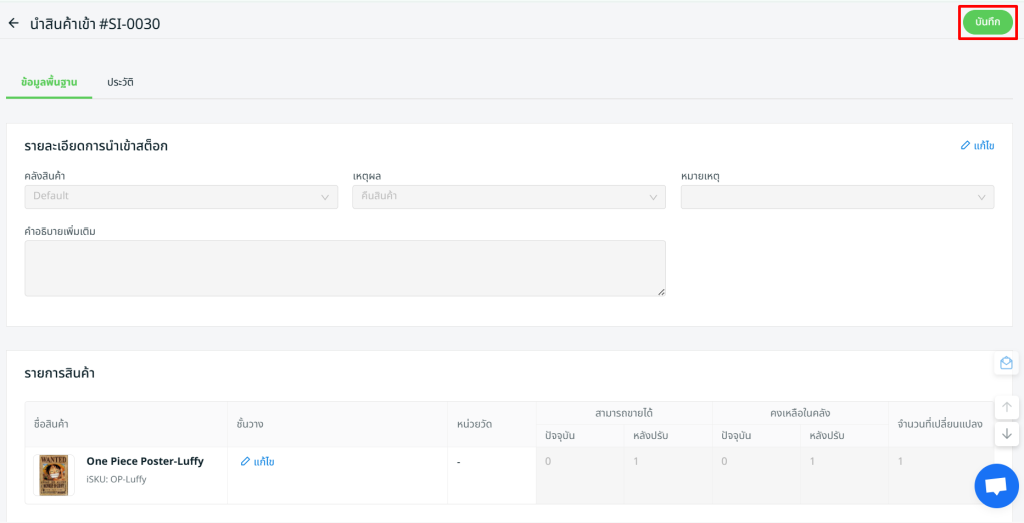 ขั้นตอนที่ 3: กรอกรายละเอียด การนำเข้าสินค้า > คลิก บันทึก