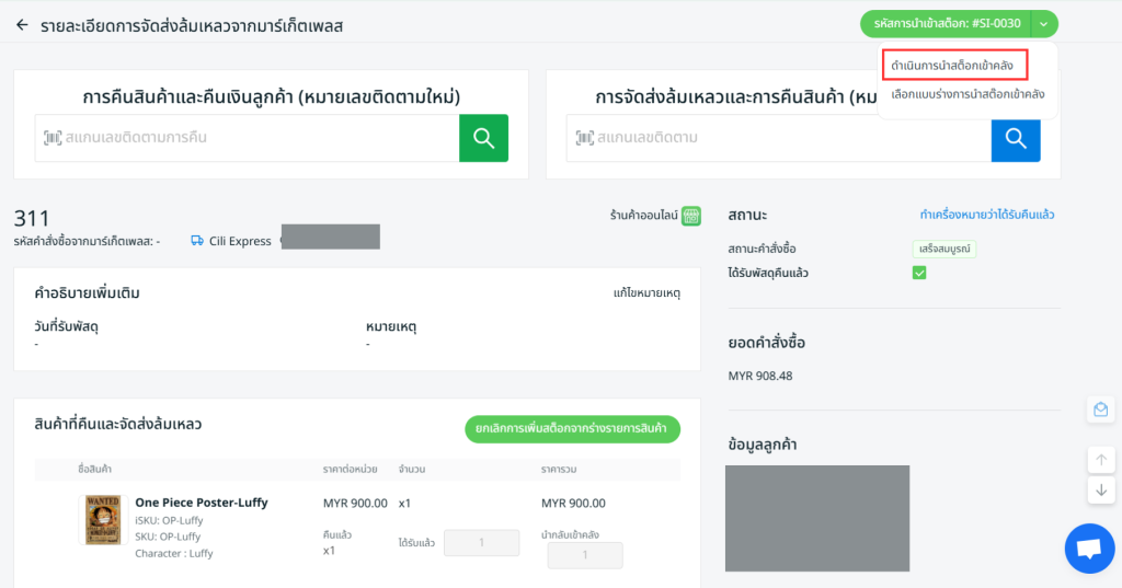 3. รับและนำสินค้าที่ถูกส่งคืนกลับเข้าสต็อก