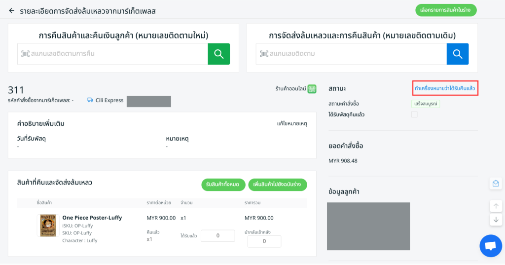 2. รับสินค้าคืนจากลูกค้าและออเดอร์ส่งไม่สำเร็จ