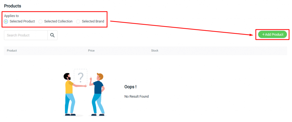 Step 7: If the Voucher Type is set as Product Voucher, you can apply the voucher to the Selected Product, Collection or Brand.