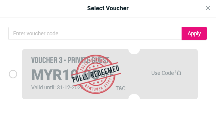 Step 5: If the voucher usage limit has been reached, it will show Fully Redeemed on the voucher so it is unable to apply.