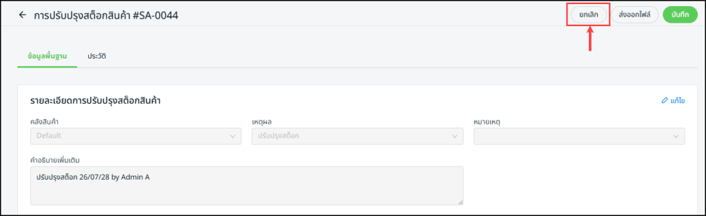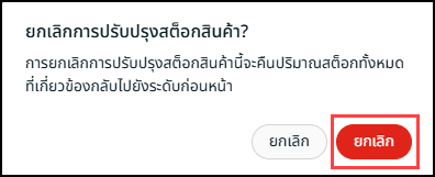 เมื่อยกเลิกการปรับสต๊อก ระบบจะย้อนจำนวนสต๊อกที่เกี่ยวข้องกลับไปเป็นค่าก่อนหน้า