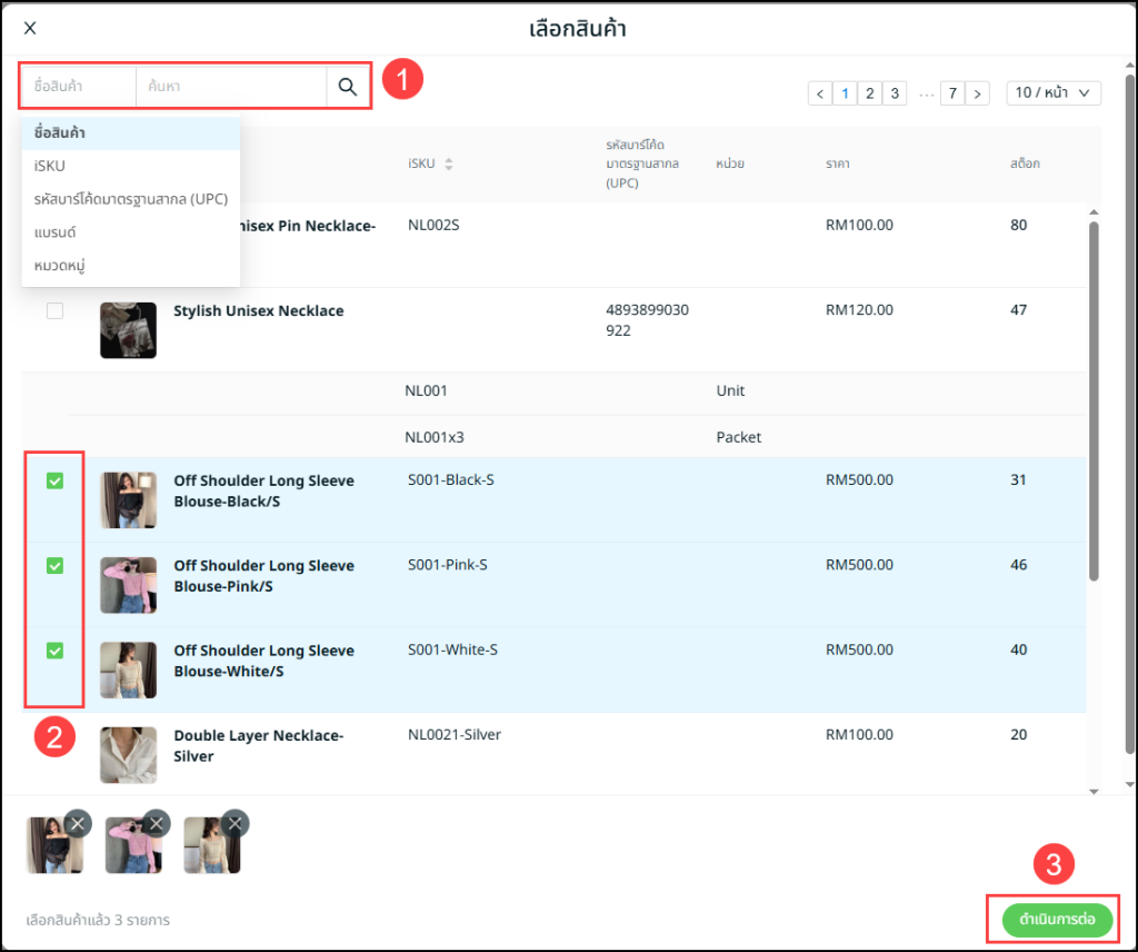 ขั้นตอนที่ 5: คุณสามารถค้นหารายการสินค้าคงคลังของคุณ > เลือกรายการที่ต้องการ > ดำเนินการต่อ