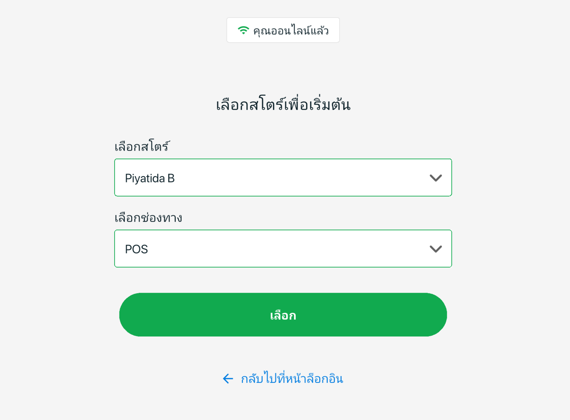 ขั้นตอนที่ 2: เลือก สโตร์ และ ช่องทาง > คลิก เลือก (กรณีมีมากกว่า 1 ร้านค้า)