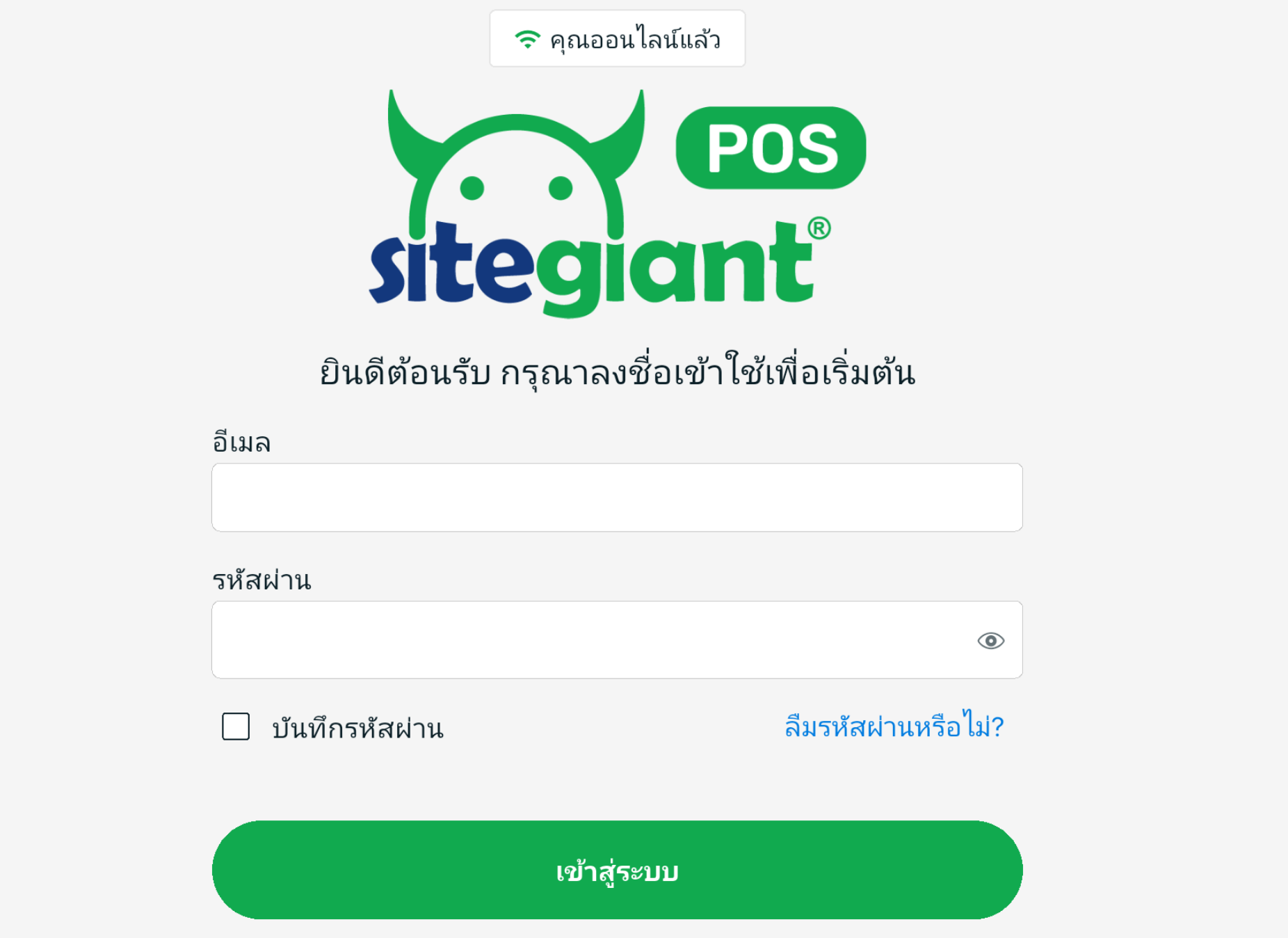 📌หมายเหตุ: ข้อมูลเข้าสู่ระบบ SiteGiant POS จะเหมือนกับระบบ SiteGiant ERP
