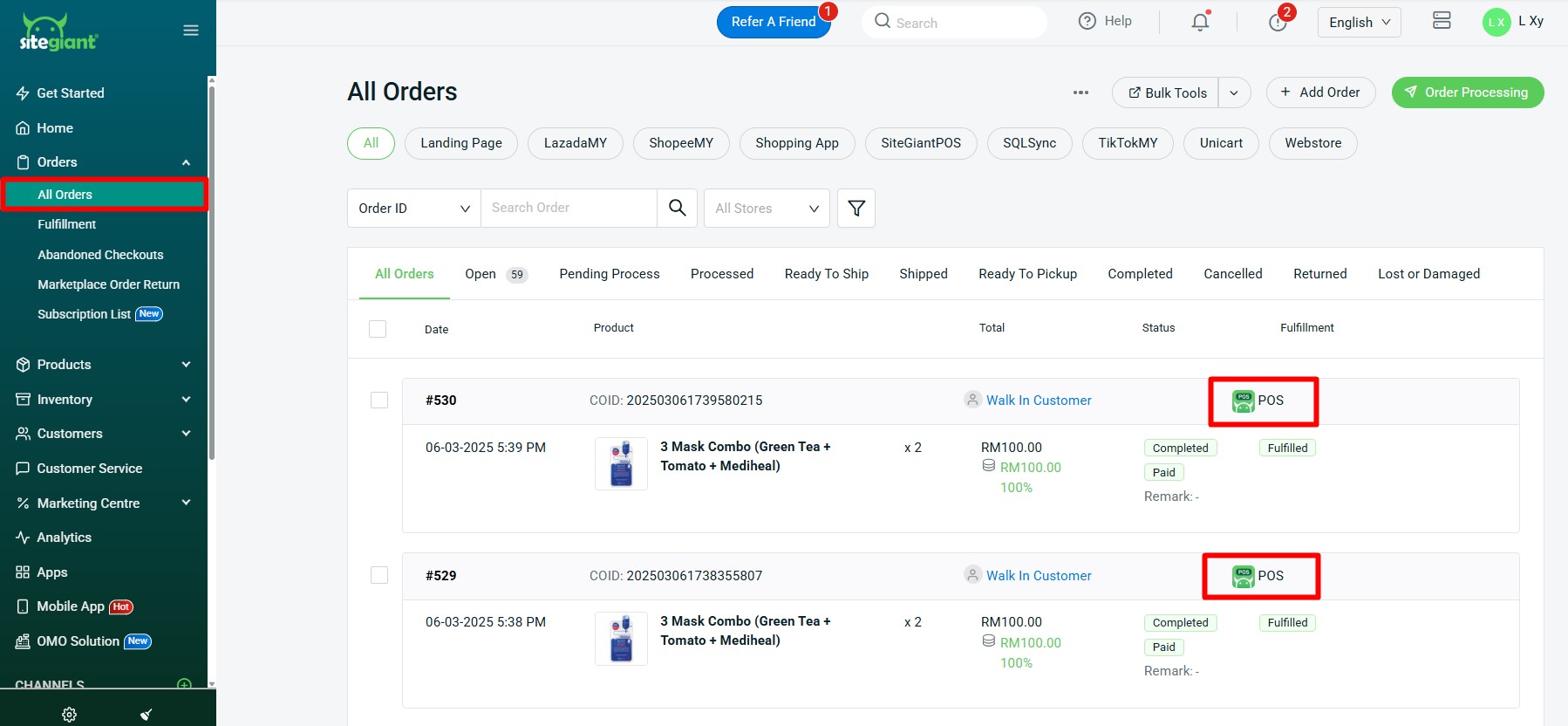 ขั้นตอนที่ 2: คำสั่งซื้อสามารถตรวจสอบได้ที่ SiteGiant Seller Center > คำสั่งซื้อทั้งหมด