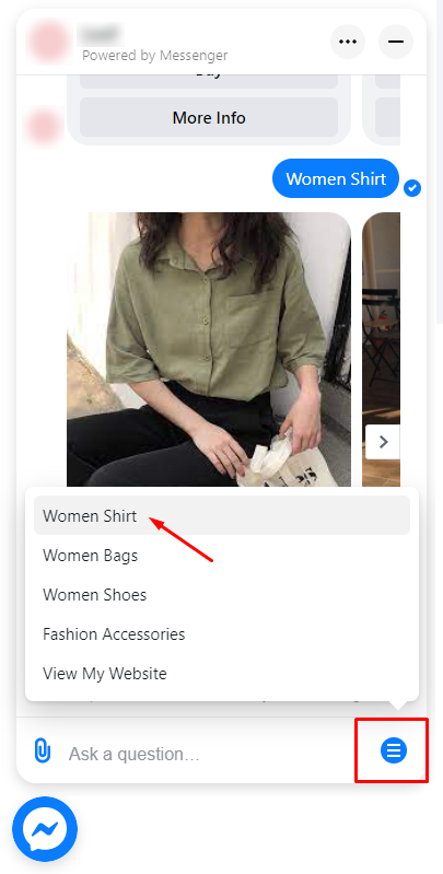 i. ลูกค้าจะเห็นไอคอน เมนู จากแชท Messenger ของคุณ