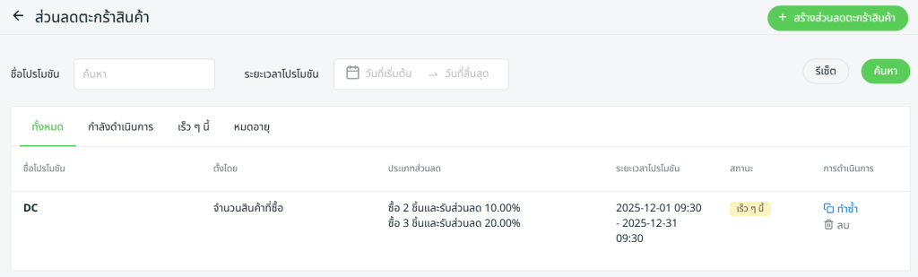 2. สร้างส่วนลดตะกร้าสินค้า