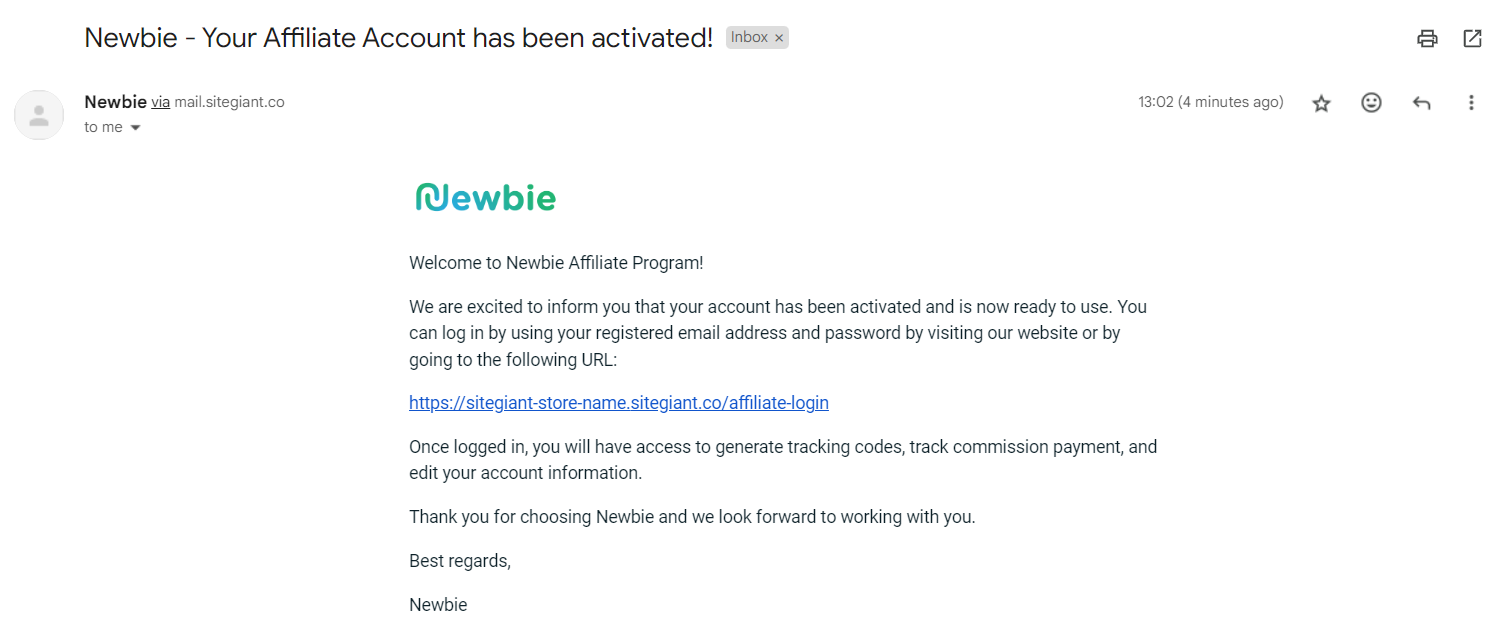 ขั้นตอนที่ 1 : พันธมิตรจะได้รับอีเมลแจ้งเตือนเกี่ยวกับบัญชีที่ถูกเปิดใช้งานแล้ว