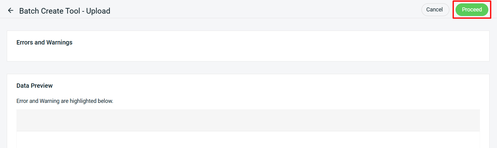 ขั้นตอนที่ 6: หากไฟล์ Excel ที่อัปโหลดมีข้อผิดพลาด คุณจะเห็นข้อความแจ้งข้อผิดพลาดใน ข้อผิดพลาดและคำเตือน (Errors and Warnings) และจะแสดงคอลัมน์ที่ผิดพลาดใน ตัวอย่างข้อมูล แก้ไขคอลัมน์ที่ผิดพลาดและอัปโหลดไฟล์ใหม่ คลิก ดำเนินการต่อ หากไฟล์ที่อัปโหลดไม่มีข้อผิดพลาด