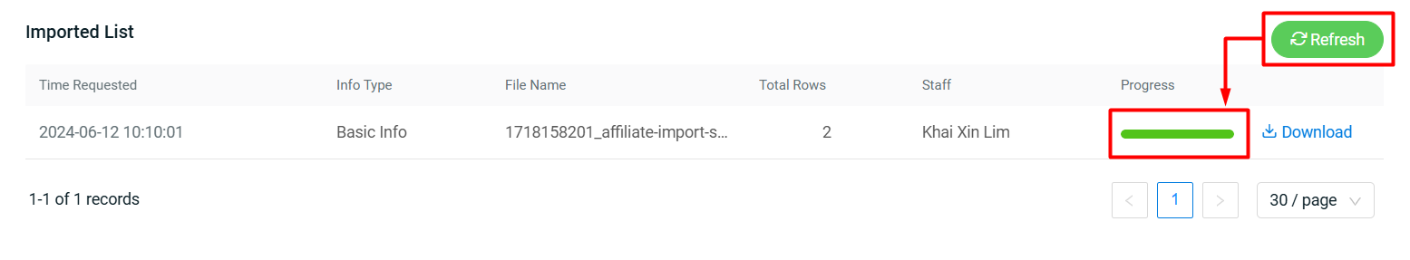 ขั้นตอนที่ 7: รอให้ระบบประมวลผลไฟล์ที่นำเข้า คลิก รีเฟรช เพื่อดูการเปลี่ยนแปลง หากแถบความคืบหน้าเป็นสีเขียว แสดงว่าไฟล์อัปโหลดสำเร็จ