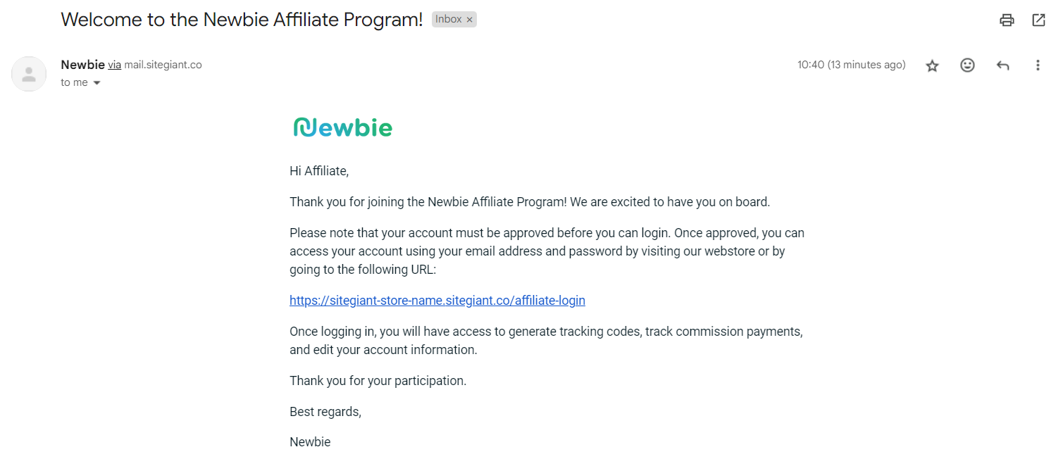 ขั้นตอนที่ 3: พันธมิตรจะได้รับอีเมลแจ้งเตือนเกี่ยวกับบัญชีของตนว่าต้องได้รับการอนุมัติก่อนเข้าสู่ระบบ