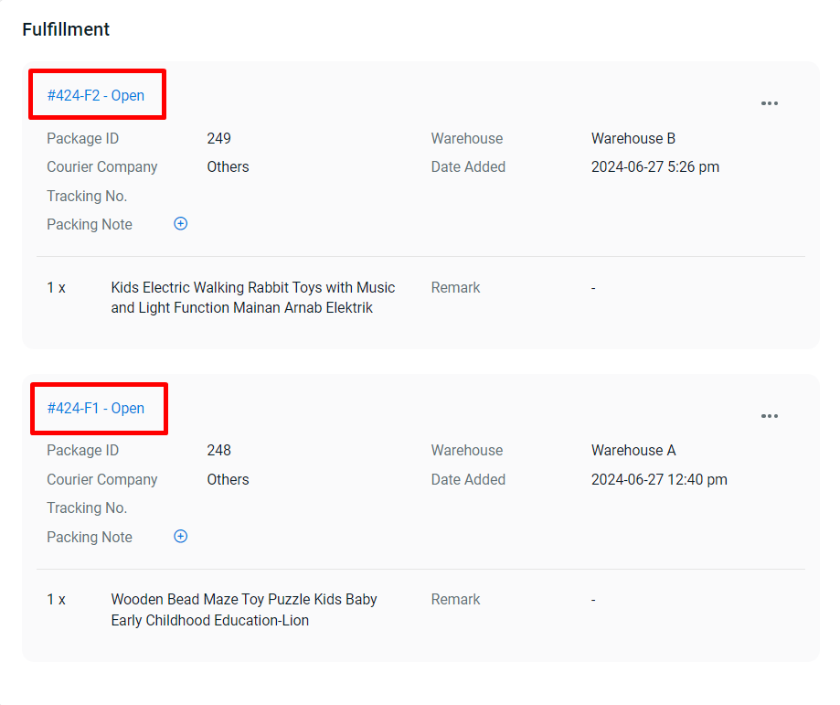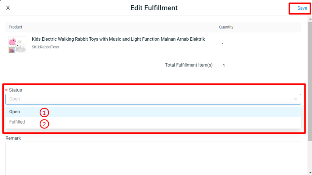 Step 3: You can change the Fulfillment Status manually by clicking the Fulfillment ID.