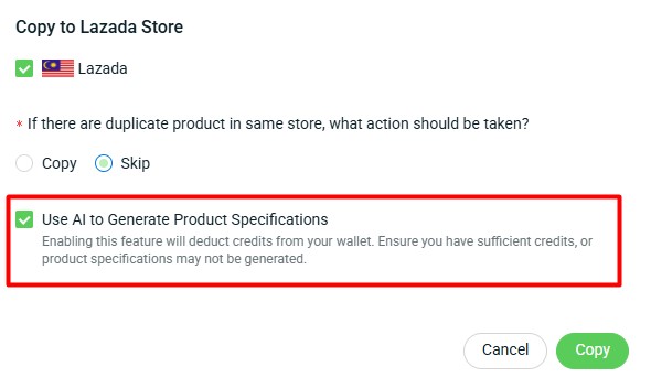 ข้าม: สินค้าจะไม่ถูกคัดลอก หากมี Parent SKU หรือชื่อสินค้าเดียวกันอยู่ในมาร์เกตเพลสแล้ว