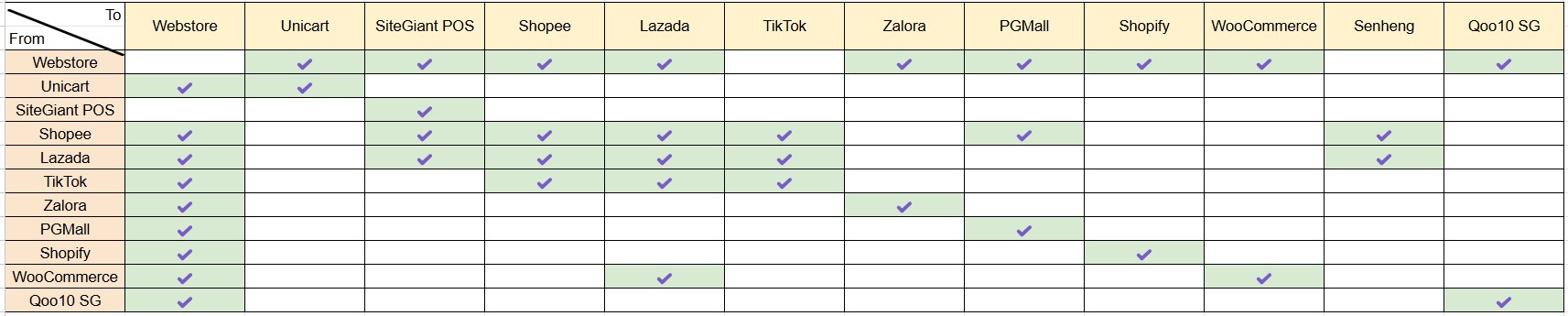 คุณสามารถดูช่องทางที่รองรับการทำ คัดลอกรายการสินค้า ได้จากตารางด้านล่าง