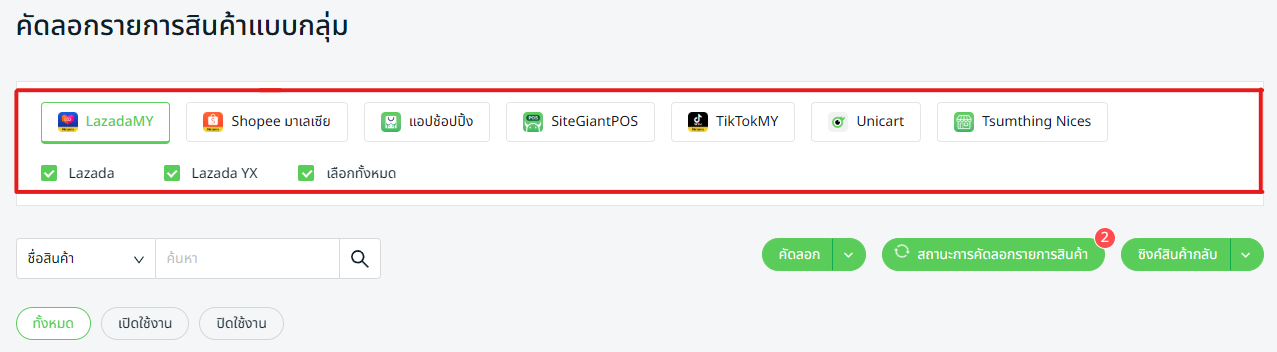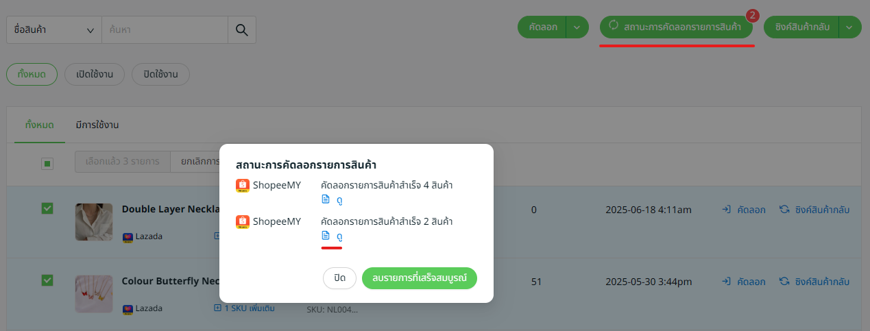 💡เคล็ดลับ: ก่อนทำการคัดลอกสินค้าไปยังช่องทางอื่น แนะนำให้คลิกที่ปุ่ม ซิงก์สินค้ากลับ เพื่อดึงข้อมูลสินค้าล่าสุดจาก Seller Center มาก่อน