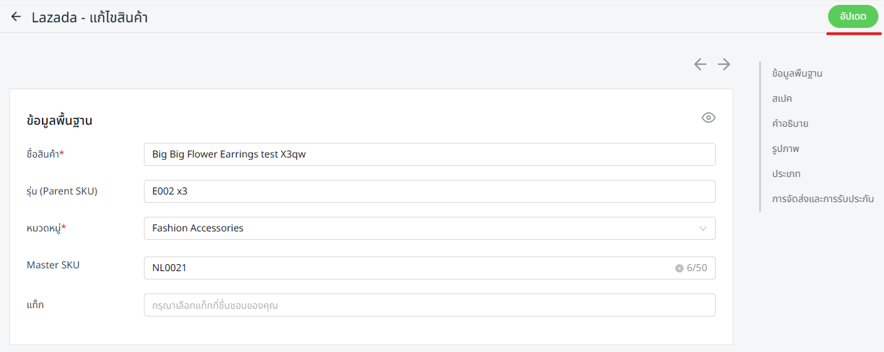 ขั้นตอนที่ 9: กรอกข้อมูลสินค้าให้ครบถ้วน > คลิก อัปเดต
