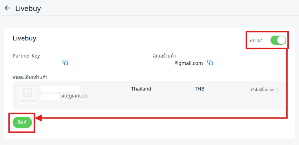 2. การตั้งค่าเชื่อมต่อ Livebuy