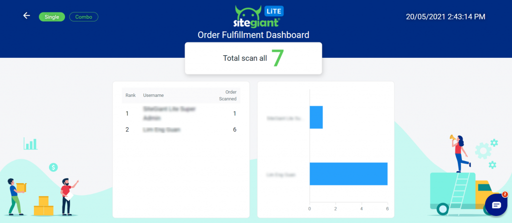 With SiteGiant Order Fulfillment Assistant, you are able to cross-check your marketplace order statuses before you start packing and an error message will be triggered upon scanning the wrong items for the order. You can also track and award your staff’s performance by checking the number of orders packed and the efficiency of your staff.