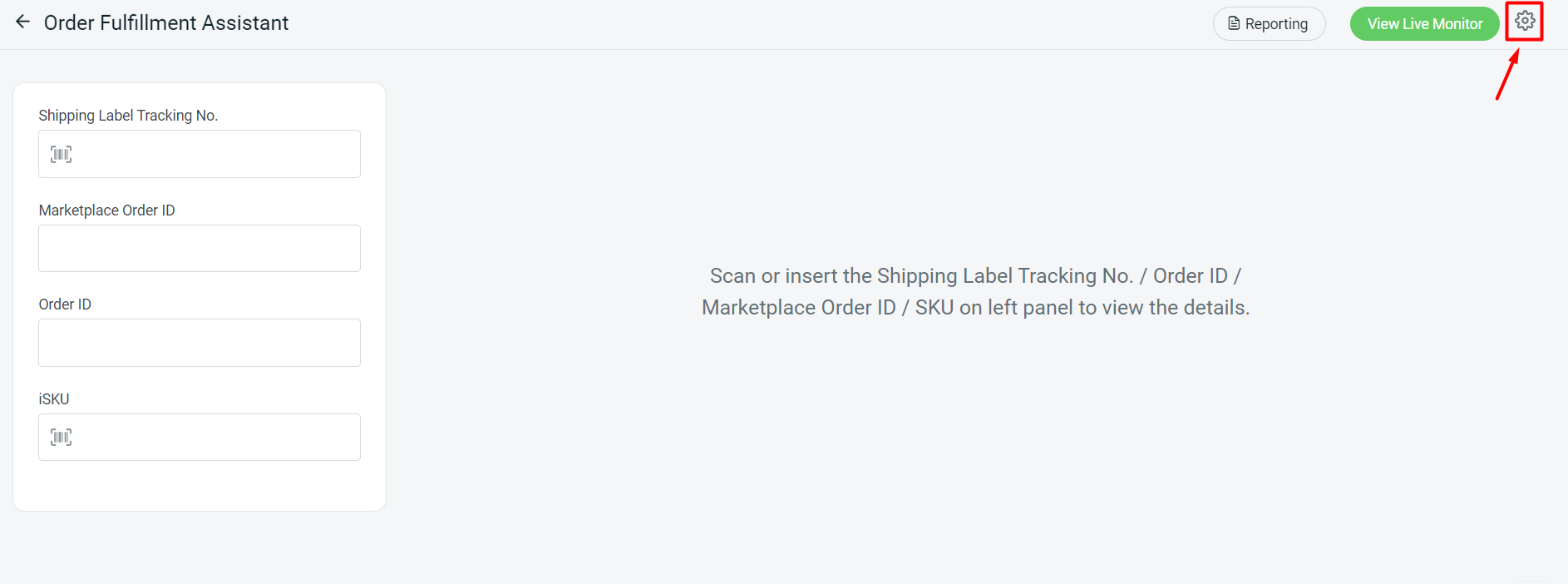 Step 2: For the first-time user, click on the Settings icon at the top right to configure the Order Fulfillment Assistant Settings.