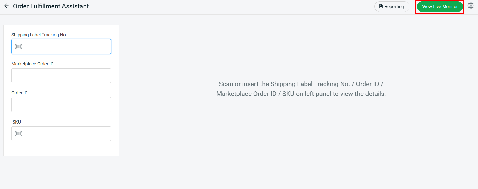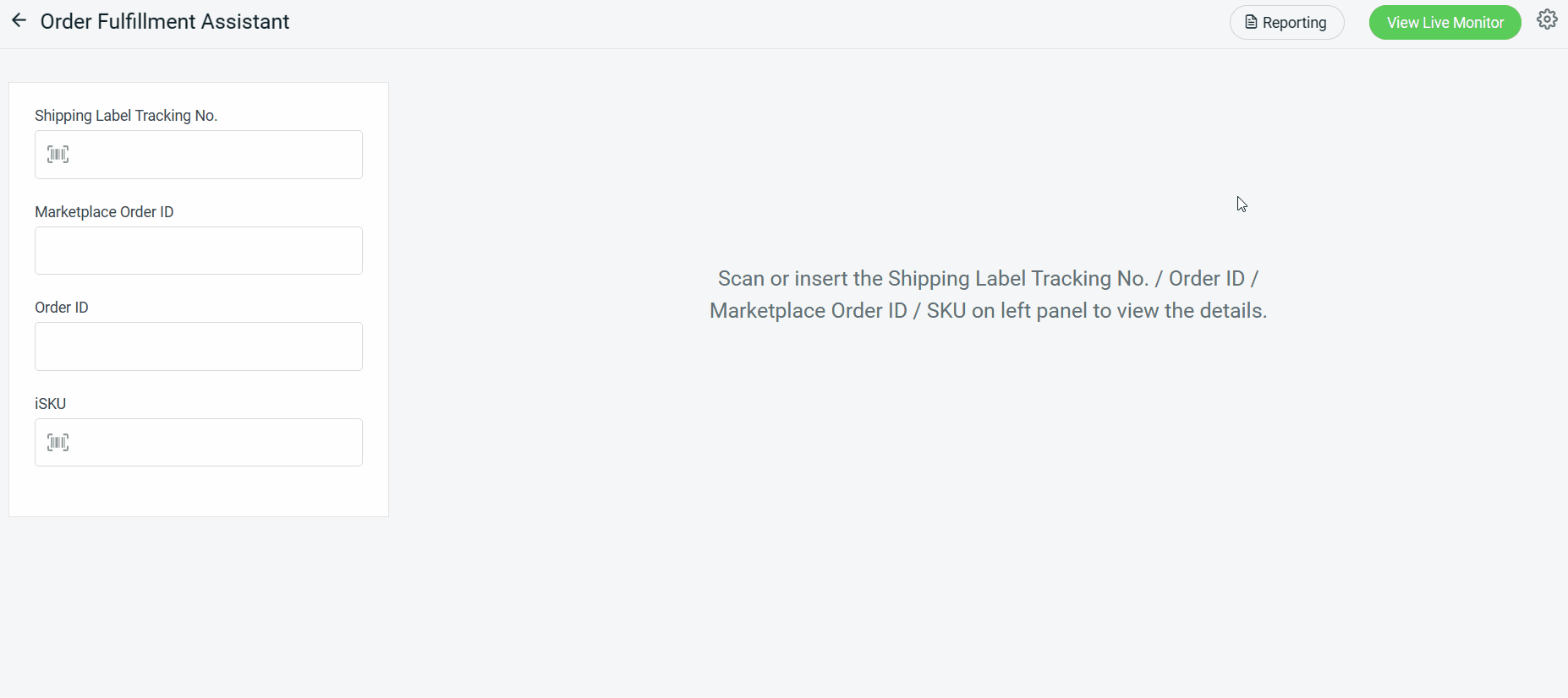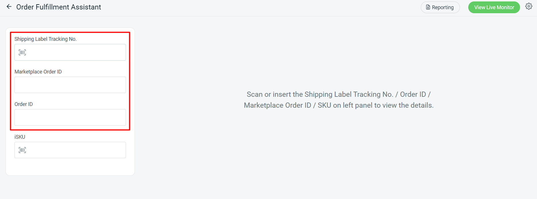 Step 1: Scan or insert the Tracking Number on Shipping Label/ Marketplace Order ID/ Order ID.