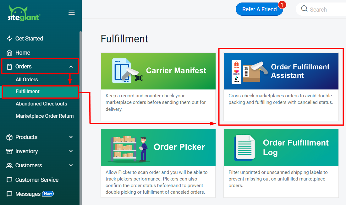 Step 1: Navigate to Orders > Fulfillment > Order Fulfillment Assistant.