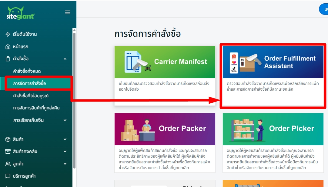 ขั้นตอนที่ 1: ไปที่ คำสั่งซื้อ > การจัดการคำสั่งซื้อ > Order Fulfillment Assistant