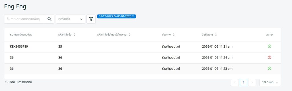 ขั้นตอนที่ 1: สแกนหรือกรอก Tracking Number จากใบปะหน้าพัสดุ / Marketplace Order ID / Order ID