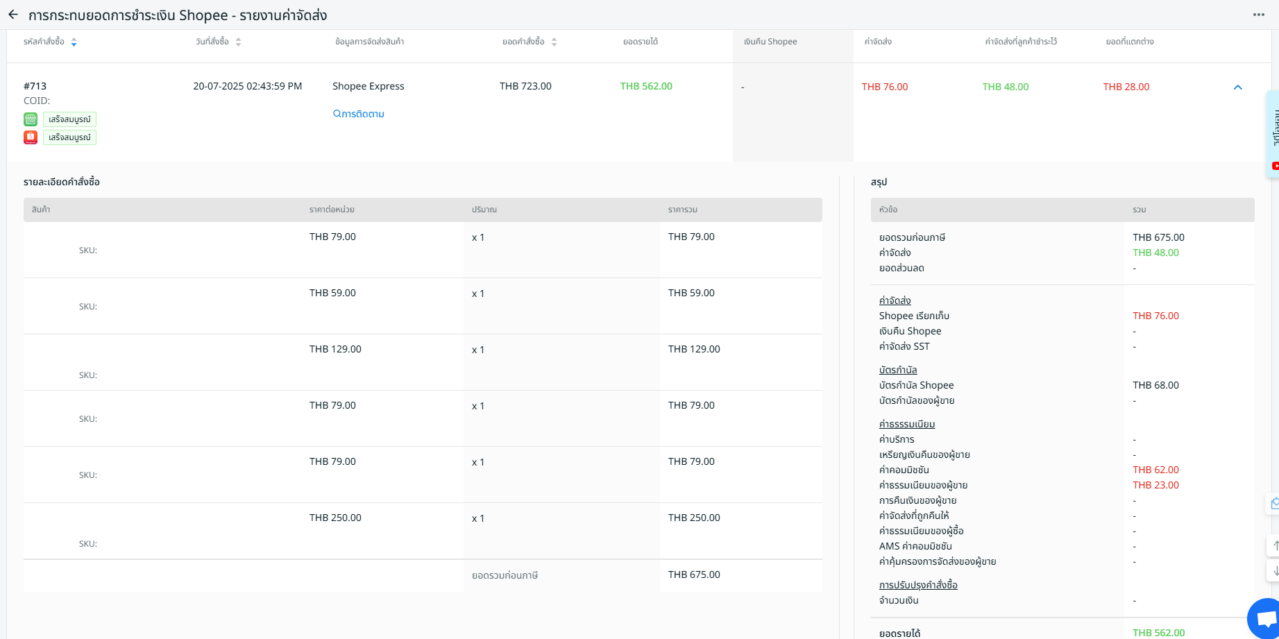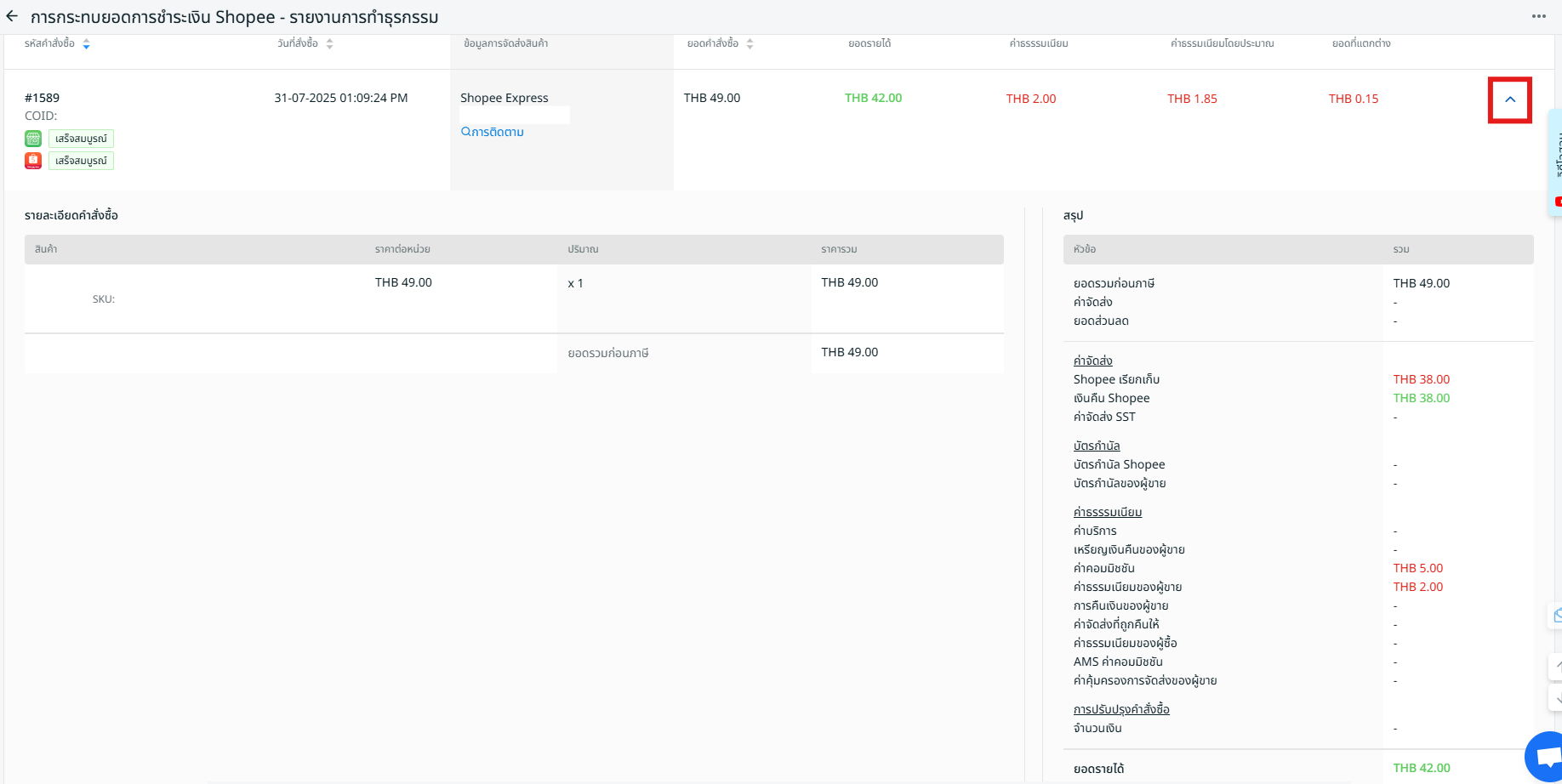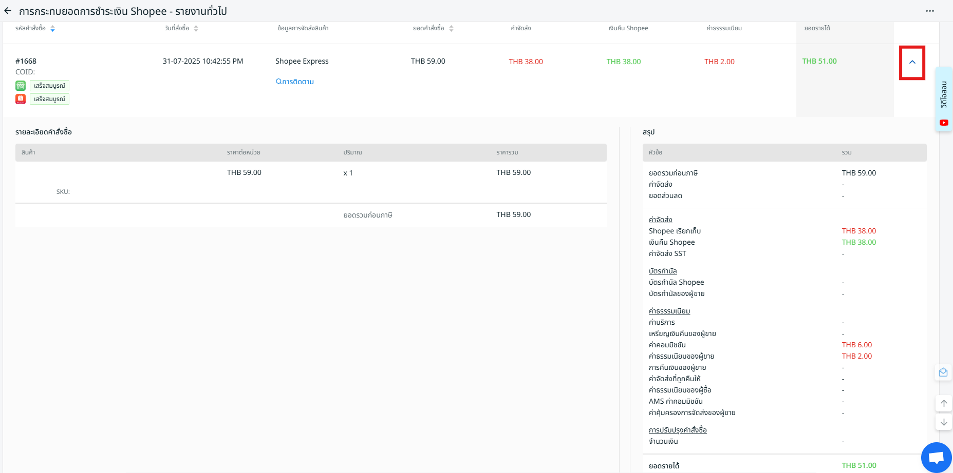 ขั้นตอนที่ 4: สำหรับคำสั่งซื้อของ Shopee ที่ได้รับการชำระเงินแล้ว คุณสามารถดูสรุปรายละเอียดได้โดยคลิกที่ไอคอนดรอปดาวน์