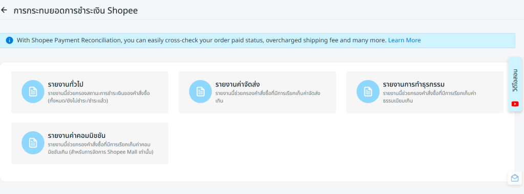2. เปิดใช้งานการกระทบยอดการชำระเงิน Shopee (Enable Shopee Payment Reconciliation)