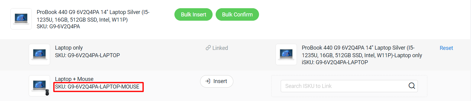 • ตอนจับคู่รหัสสินค้าแบบกลุ่ม ระบบจะสร้าง iSKU อัตโนมัติให้ตาม SKU ของสินค้า