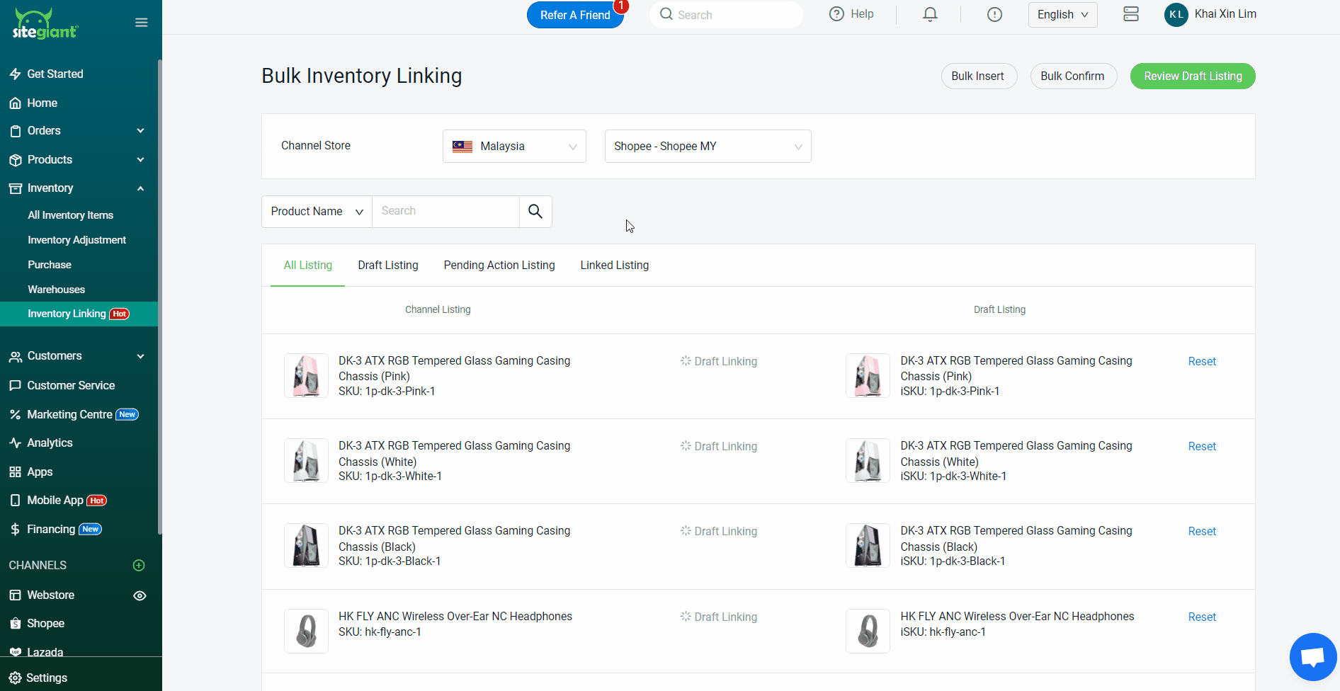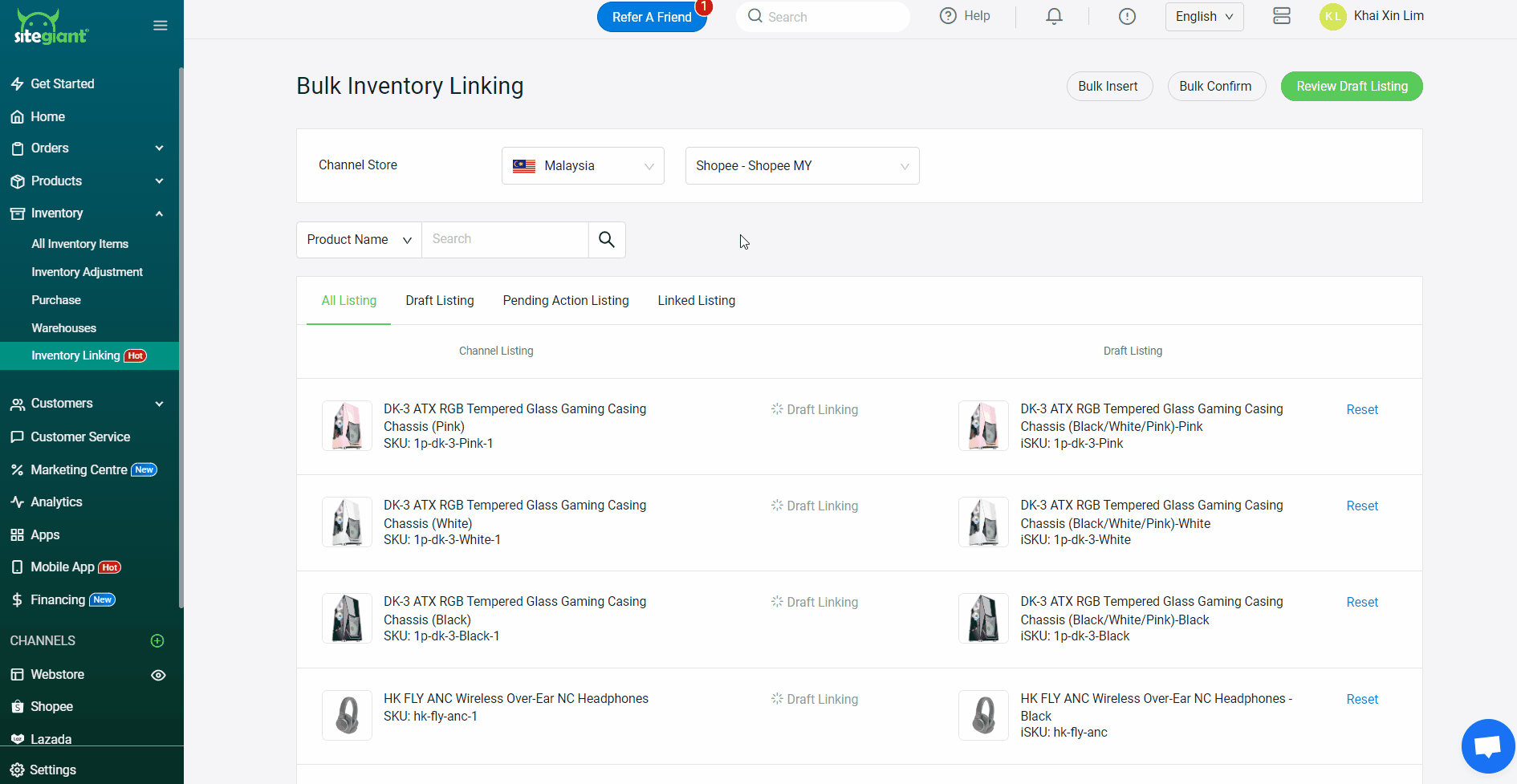ขั้นตอนที่ 5: ทำขั้นตอนเดิมซ้ำสำหรับ Channel Store อื่น ๆ โดยกรุณาตรวจสอบให้แน่ใจว่าสินค้าทั้งหมดของคุณได้เชื่อมโยงกับรายการสต็อก (Inventory Item) หรือสินค้าแบบชุด (Kit) แล้ว > คลิก “ตรวจสอบรายการฉบับร่าง” (Review Draft Listing) > ตรวจสอบและเช็ครายการเชื่อมโยง > จากนั้นคลิก “ยืนยันและบันทึกรายการสินค้า” (Confirm And Save Listing)