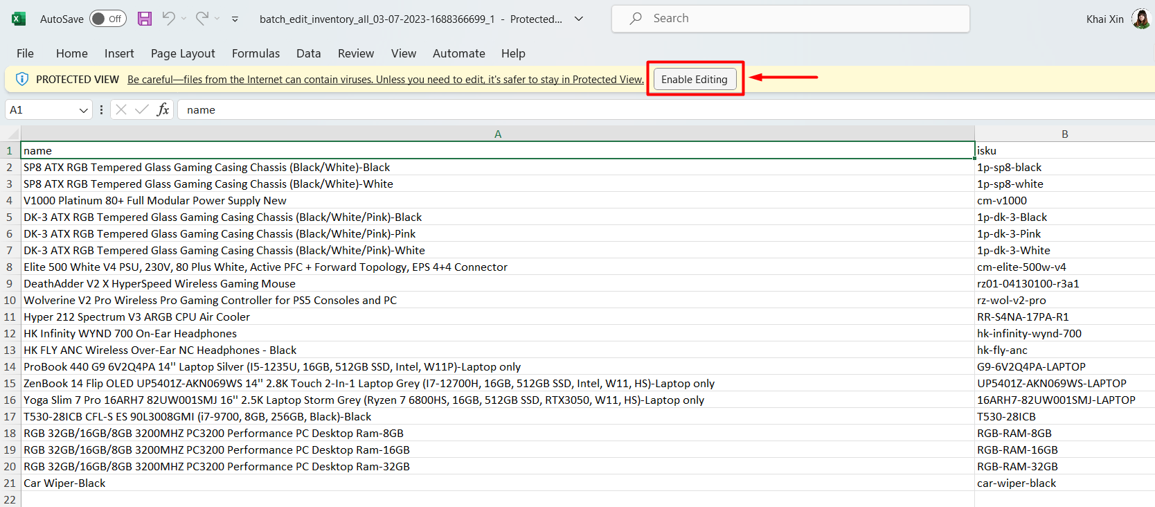 ขั้นตอนที่ 4: เปิดไฟล์ แล้วกด Enable Editing เพื่อแก้ไข